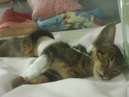 同事經過幾次探視,小貓病情雖然有稍許穩定